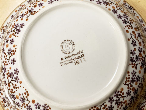 プロイセン王国領であったボレスワビエツは1871年にドイツ帝国に組み入れられます。当時は町の名前もドイツ語でブンツラウと呼ばれ、ブンツラウアーと呼ばれた陶器産業は19世紀後半頃から、柄模様が映える白い陶土が使われます。スタンピングによる装飾技法が編み出され、ピーコックアイと呼ばれるドット模様や花柄など、今でも伝統柄として愛されるデザインが施されるようになりました。