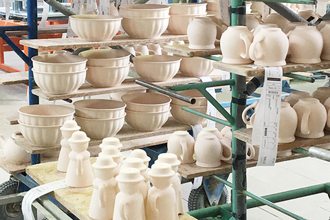 ポーリッシュ・ポタリーは、ボレスワビエツ近郊で産出される土を原料に使い、成形、旋削、洗浄、焼成、装飾、施釉、再焼成まで、現在も多くがボレスワビエツにある工房で人手による手法で生産されています。